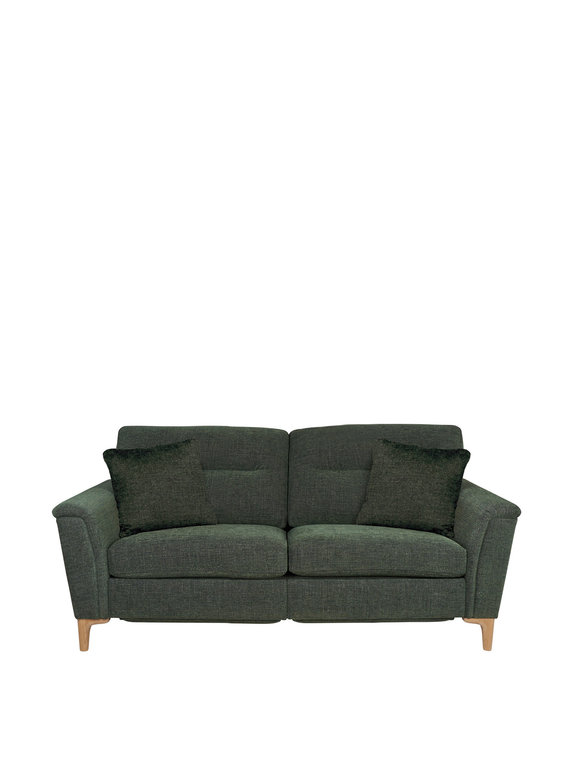 The medium Sandford sofa gives any room a contemporary look, with the reclining sofa only having the footrest lifting meaning you can have the sofa close to the back of the wall, so you won't need to compromise on space. Also, there is an integrated USB-C port. The curved solid ash feet, are inspired by our Romana collection meaning these collections can be used side by side. Choose fabric from our Casa and Universal Collection for your armchair and two scatter cushions. With a choice of two finishes on the ash feet.