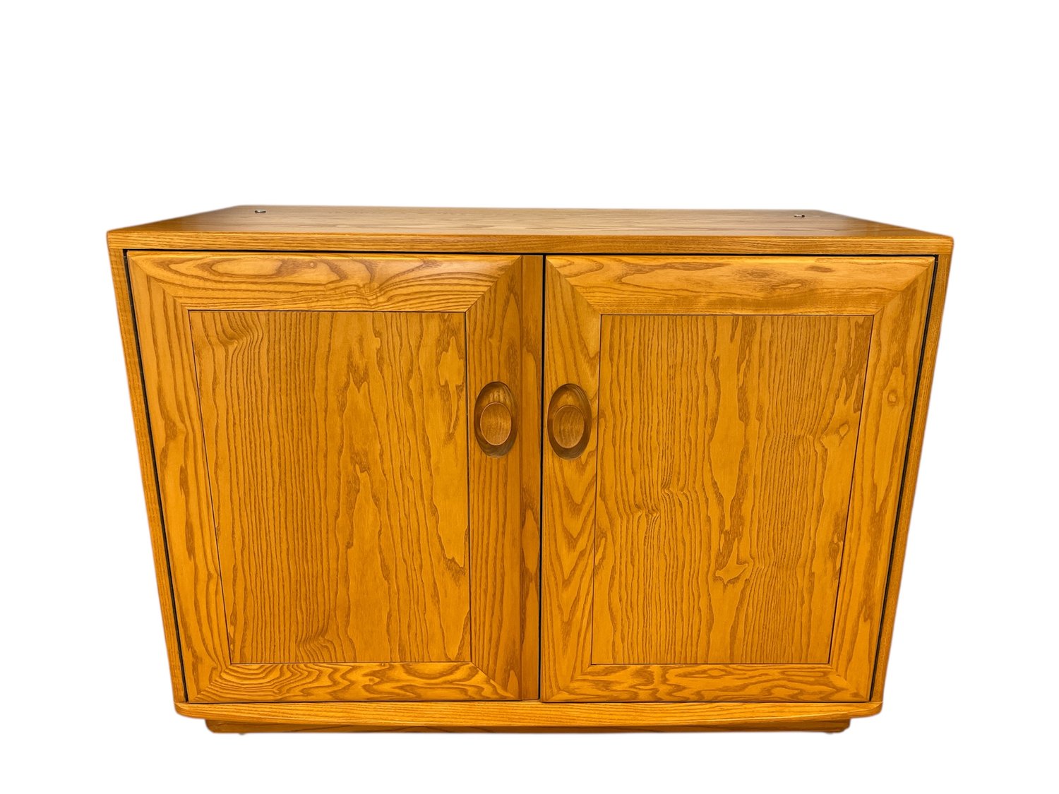 *THIS CABINET IS A BASE UNIT AND DOES HAVE THE HOLES IN THE TOP WITH BOLTS FOR FIXINGS - SEE PICTURES* This Windsor cabinet comprises two large cupboards each with an adjustable storage shelf, creating flexible storage for your home. The cabinet doors feature oval wooden handles an iconic detail of the range. The beauty of the wood grain is accentuated by the wood stain and lacquer that protects the timber. This cabinet is 68cm in height and suitable for use with a display top from the Windsor collection.